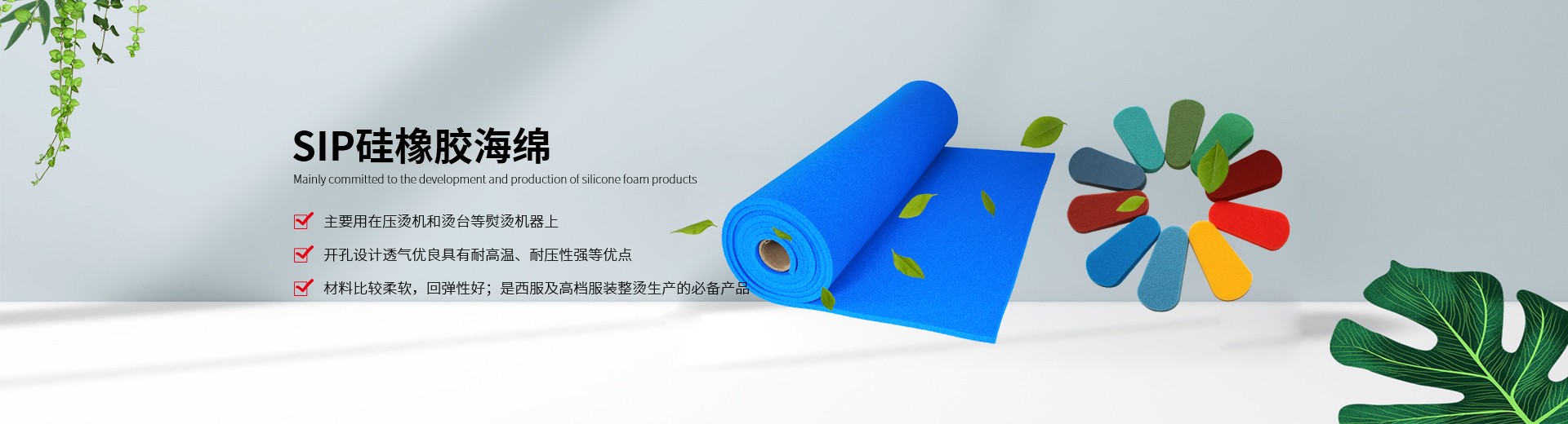 ????我公司生產(chǎn)的硅膠海綿具有耐高溫、耐壓、透氣性能好、抗撕拉、使用壽命長、環(huán)保等特點(diǎn),主要適用于服裝干洗、水洗熨燙設(shè)備,如壓燙機(jī)和燙臺(tái)等。另外我們也提供各種燙氈、罩布等整燙專用墊料,客戶可根據(jù)不同熨燙工藝選擇不同的搭配組合,滿足高品質(zhì)的熨燙要求。